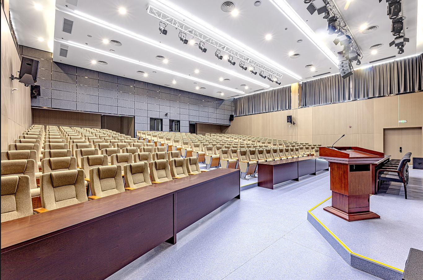 國(guó)景將學(xué)術(shù)報(bào)告廳打造為校園學(xué)術(shù)生態(tài)的核心樞紐,致力于構(gòu)建全方位學(xué)術(shù)學(xué)習(xí)保障體系,賦能知識(shí)探索與創(chuàng)新研究。廳內(nèi)配備先進(jìn)的階梯座椅系統(tǒng),以開放式學(xué)習(xí)空間,確保學(xué)術(shù)活動(dòng)高效開展,推動(dòng)學(xué)術(shù)卓越與人才培養(yǎng)協(xié)同發(fā)展。